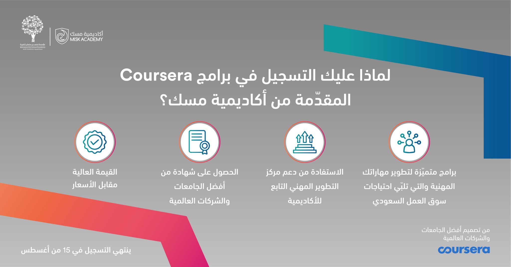 Misk Academy أكاديمية مسك On Twitter أهلا بك هناك شهادة واحدة من كورسيرا والجهة التعليمية التمكن من اللغة الإنجليزية من متطلبات البرنامج شكرا لاهتمامك