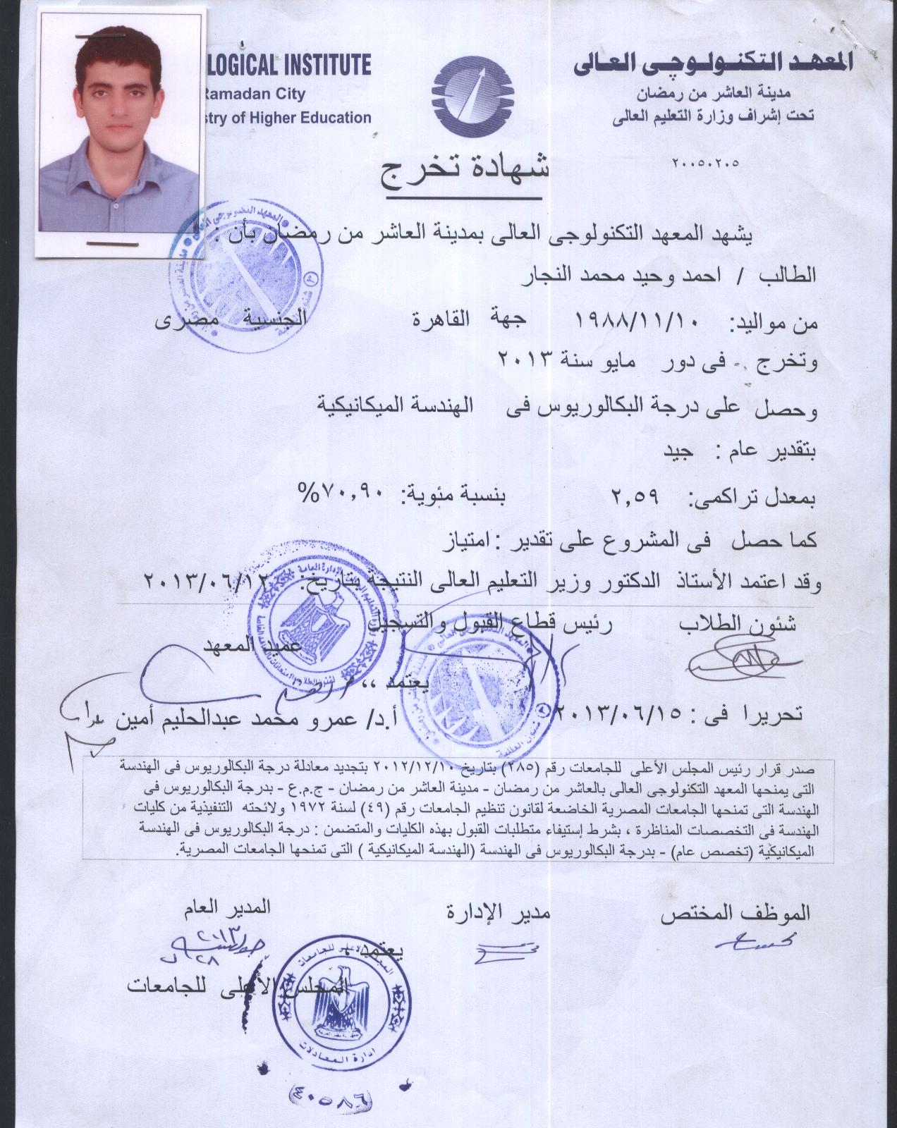 استلام شهادات تخرج المعهد العالي للهندسة و التكنولوجيا المعاهد العليا بكينج مريوط