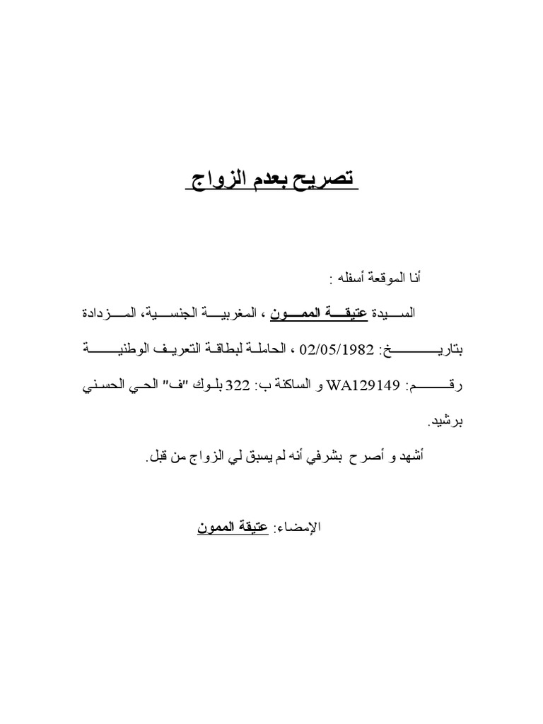 شهادة عدم الزواج Pdf