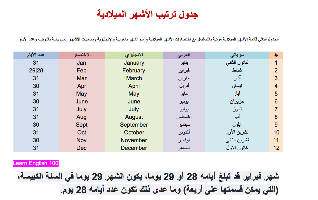 ترتيب الأشهر بالإنجليزي موضوع