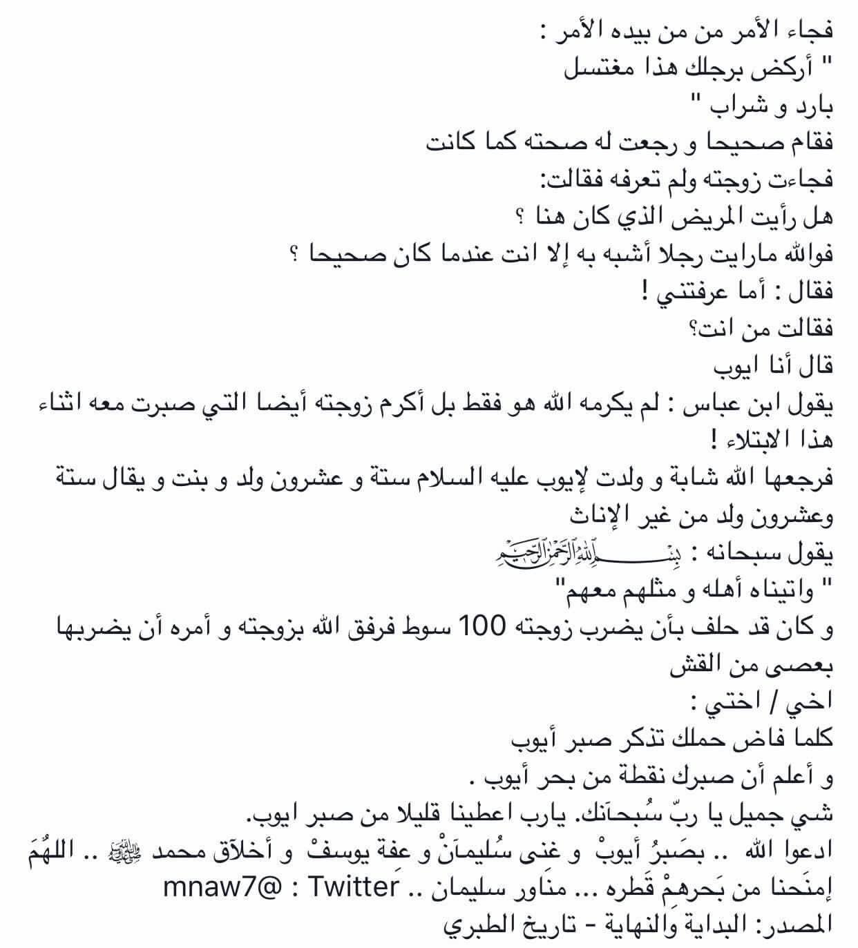 مناور سليمان On Twitter استمر أيوب عليه السلام في البلاء 18 عام و هو صابر و لا يشتكي لأحد حتى زوجته وأصبح مثلا لصبر قصة نبي الله أيوب
