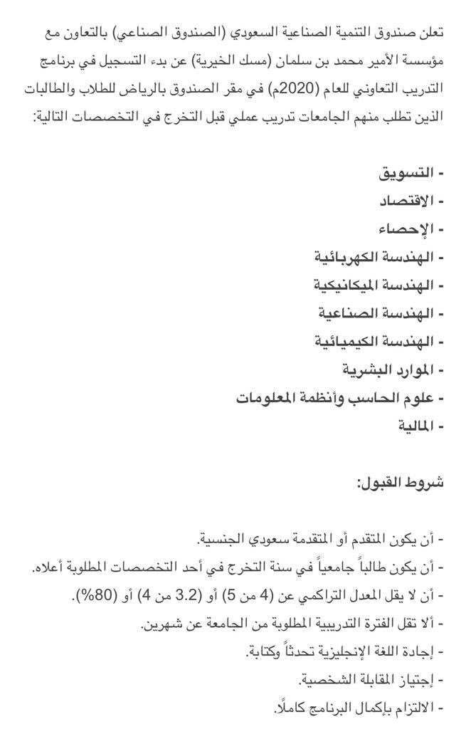صندوق التنمية الصناعية السعودي بالتعاون مع مؤسسة مسك الخيرية يعلن عن برنامج التدريب التعاوني لعام 2020م للرجال والنساء By Mohammed Alzahrani Medium