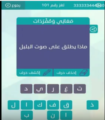 حل سؤال ماذا يطلق على صوت البلبل من لعبة وصلة المجموعة الثانية عشرة لغز رقم 101 صقور الإبدآع