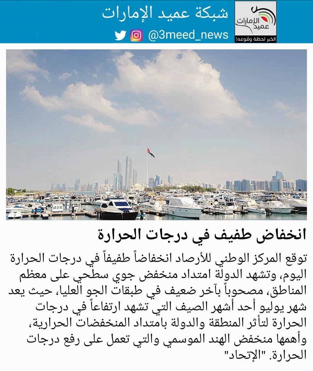 شبكة عميد الإمارات V Twitter توقع المركز الوطني للأرصاد انخفاضا طفيفا في درجات الحرارة اليوم وتشهد الدولة امتداد منخفض جوي سطحي على معظم المناطق مصحوبا بآخر ضعيف في طبقات الجو العليا حيث