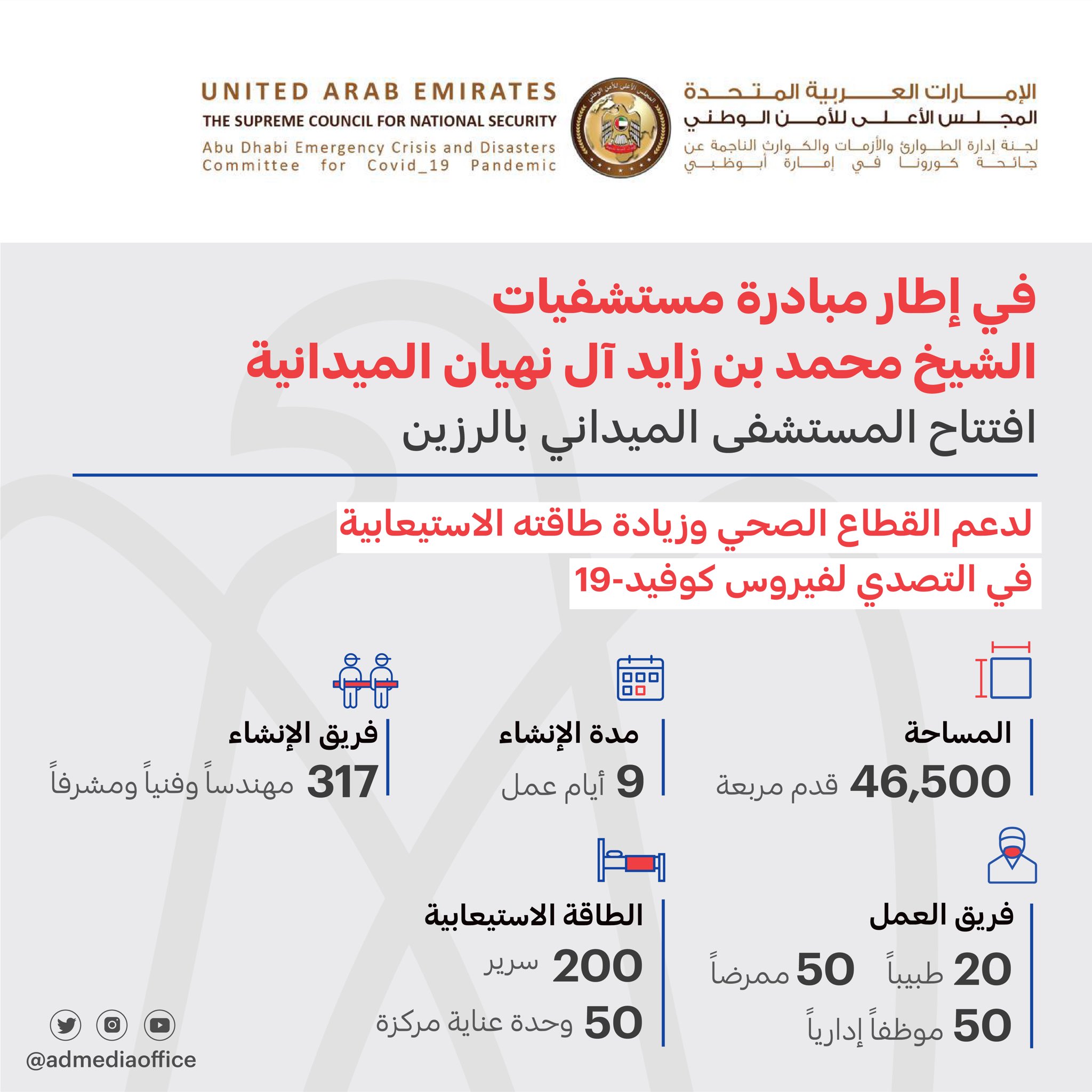 مكتب أبوظبي الإعلامي On Twitter افتتحت لجنة إدارة الطوارئ والأزمات والكوارث الناجمة عن جائحة كورونا في إمارة أبوظبي المستشفى الميداني بالرزين ضمن مبادرة مستشفيات الشيخ محمد بن زايد آل نهيان الميدانية لدعم