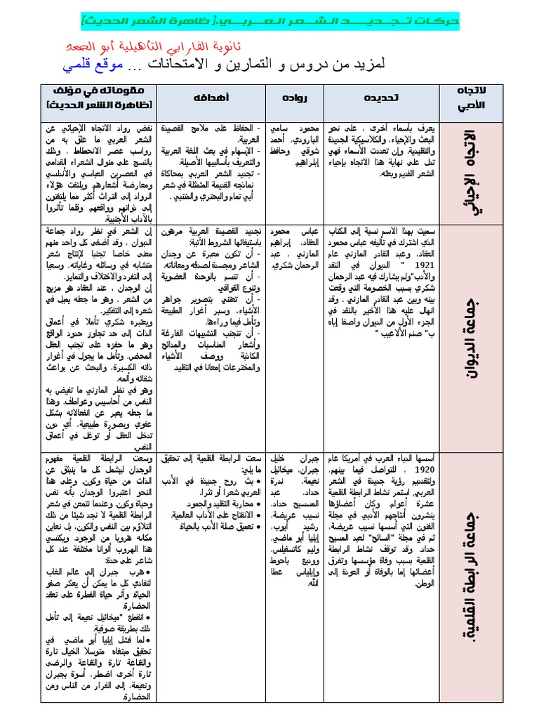 ظاهرة الشعر الحديث ملخص تركيبي Alloschool