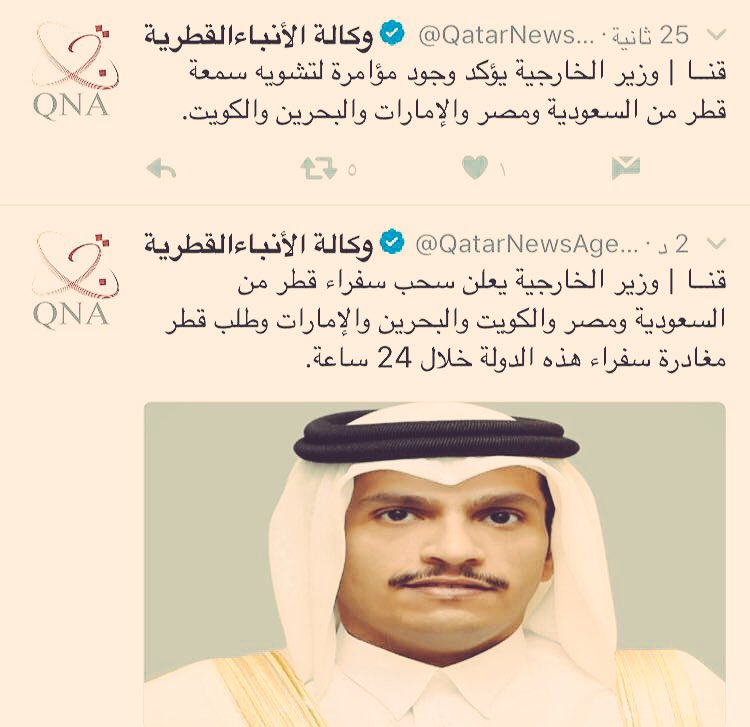 أخبار السعودية On Twitter عاجل قطر تعلن سحب سفرائها من السعودية ومصر والكويت والبحرين والإمارات وطلب مغادرتهم خلال 24 ساعة قطر تسحب سفراء الخليج Https T Co 31rvbvioex