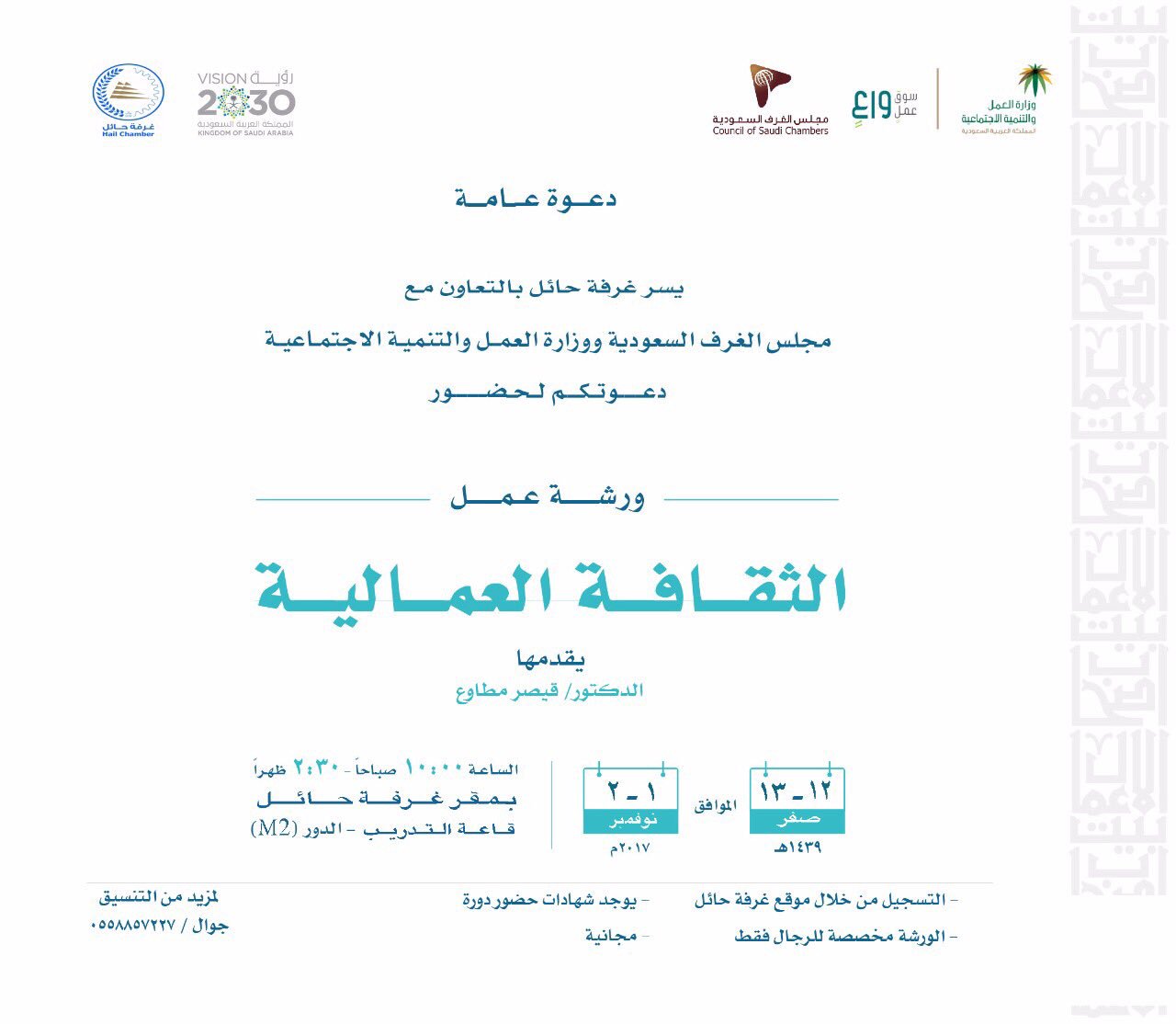 غرفة حائل نعود بحذر On Twitter دعوة للتسجيل في ورشة عمل مجانية الثقافة العمالية للرجال من خلال هذا الرابط Https T Co Nvu3rpjiec